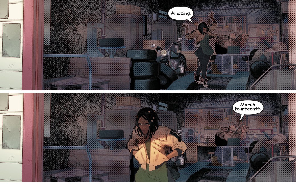 Later, Naomi is checking out the footage of the battle on her phone, doing a search about it taking place in Port Oswego, but keeps coming up with zero results and auto-suggestions. This makes Naomi even more curious about what is going on until she gets brought back out of her train of thought with her boss begging her to get to work. While she was about to tell Anabelle to stop texting her, Anabelle replies back by telling her that Superman came back which causes our protagonist to race down to the scene of the fight again; only to come short yet again.