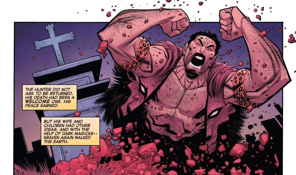 - Nick Spencer delivers a badass take on Kraven the hunter, one of which we haven’t seen since The Last Hunt! Turning him from a superficial hunter to the most extreme conservationist in the world. The dialogue between Kraven and his new son from laying out his plan up to his motivations was superb, making it very compelling to the reader.