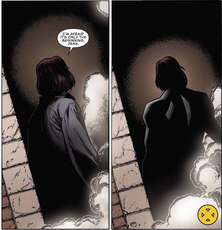 The ongoing question at the beginning of this issue was asked by a massive clone flood of Multiple-Men asking “Where is Kitty Pride?!” Jean sees the Multiple-Men getting killed left and right while the X-Men wonder why they are attacking, noticing their minds seemed fractured. Jean snapped out of her trance, asking where Kitty was. X-23 replied to Jean, telling her that Kitty was taking some of the students to do some training OPs before the press conference.