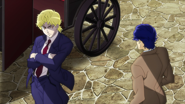 Set in the 1880s in London England, we meet a young man named Jonathan Joestar and his adopted brother, Dio Brando but unbeknownst to Jonathan, Dio wants to take Jonathan’s Legacy as the heir of the Joestar family. Throughout the first couple of episodes, we see how sinister Dio could be when it comes to making Jonathan’s life a living hell. With the First Episode, it instantly makes you hate Dio; I am not sure why they went to the great lengths to make him hated in only about 15 to 20 minutes into the first episode but not gonna argue with Hirohiko. It is fascinating to see how his love of music influenced his work and the Characters of his story. The concept of ‘Hamon‘ is a neat idea, this was done through an ancient form of Martial Arts called “Sendo“, the description of Hamon is as follows: “Through self-controlled respiration, a trained person can produce an energy manifesting as ripples throughout their body and that is identical to the energy of the Sun.” As the series progresses, it is clever to see Jonathan grow into his Hamon training, leading up to the eventual showdown with his adopted brother, costing him his wife and eventually his life; curling up with his brother’s severed head in his arms as the ship sinks, foreshadowing what is to come later.
