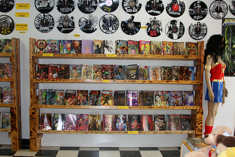 When you walk into his store, you will notice right away on the walls are clocks; but they are not just any kind of Clock, they are made of Vinyl and are designed after shows such as Game of Thrones, The Flash, Dragon Ball Z. The selection goes on as you look around, various selections of Marvel Action Figures, up to DC Comics Action Figures; also has a great selection of discount goods and of course Retro toys! Toys that vary from the 80s or 90s.
