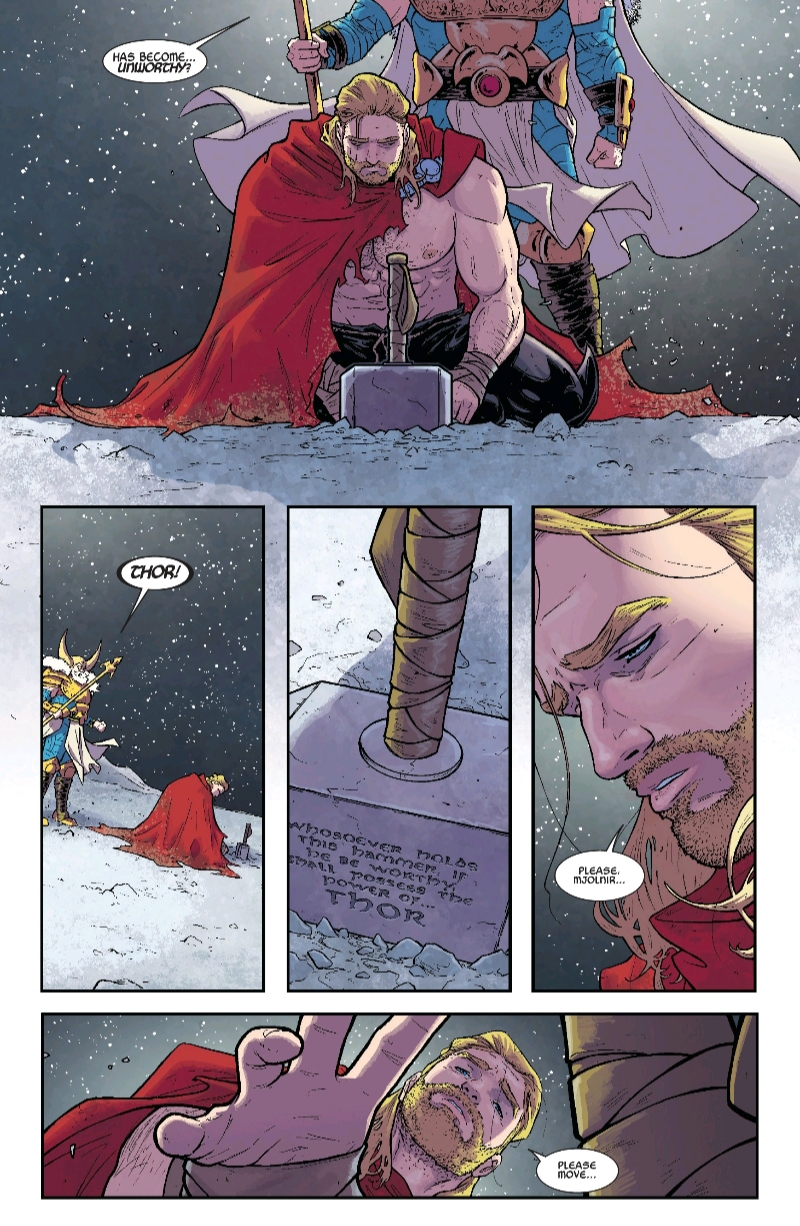 Speaking of Odin, it’s fascinating to see the Allfather angry and trying to figure out who this mysterious new wielder of Mjölnir and what caused him and his son to be deemed unworthy is priceless. But the artistic team behind this series is doing fantastic too, Russell Dauterman, Colorists Matthew Wilson, Jorge Molina, Letterer Joe Sabino with each issue and page the detail and hard work is shown.