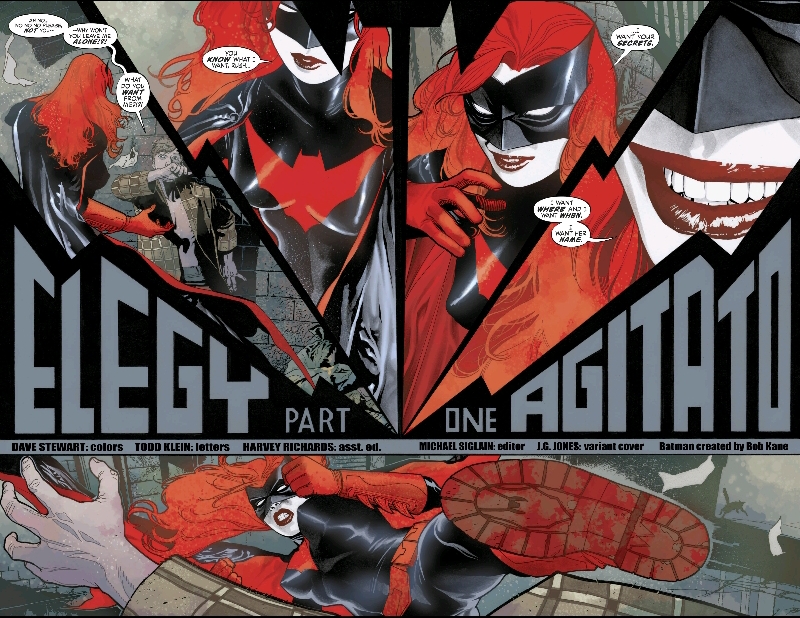 Today, I am reviewing one of the best Batwoman stories out there today, Elegy. This ran from 2009 to 2010, a Story arc from the Flagship title ‘Detective Comics’ that ran from Issues 854 to 860. Written by Greg Rucka and Art by J.H. Williams III, it is a notable story that replaced it’s a regular feature Character, Batman due to his apparent death in DC’s Event Final Crisis and the aftermath of Batman RIP, what was planned in stages since Batwoman’s first appearance in 52 (a series that took place during the missing year after the end of Infinite Crisis.) But onto what this story is about, Batwoman faces a madwoman named ‘Alice‘ who was inspired by the story Alice in Wonderland, the woman sees her life as one big fairy tale and everyone around her as expendable. Batwoman must stop Alice before she unleashes a toxic cloud over Gotham, but Alice, who is mad as a hatter has more up her sleeve than the poison she is about to unleash, can Batwoman stop Alice?