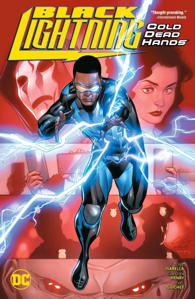 The newest review finds us in Black Lightning: Cold Dead Hands, taking place in Cleveland Ohio, Jefferson Pierce is a teacher and role model for his students, and as Black Lightning, he protects his City from Criminal threats but now a gang armed with super-weapons have taken over the streets and Black Lightning is framed! Real-World Issues come crashing into the Superhero World! Before the television series premiered on the CW Network, Black Lightning seemed to have dropped off the face of the earth in the New 52, with him his family disappeared as well. Then the man who created the Electrokinetic Super-Hero, Tony Isabella, and Co-Creator Trevor Von Eden returns to tackle the tough issues that are plaguing the African American Community such as Racial Profiling, Systemic Racism, Police Brutality, Gang Violence (A Problem in any community as well.) Before I start the review I would like to say that Red’s Nerd Den stands with the Black Lives Matter Movement and stand for Equality. If you would like to donate or help the cause, click on this link and it will show other ways to help the cause.