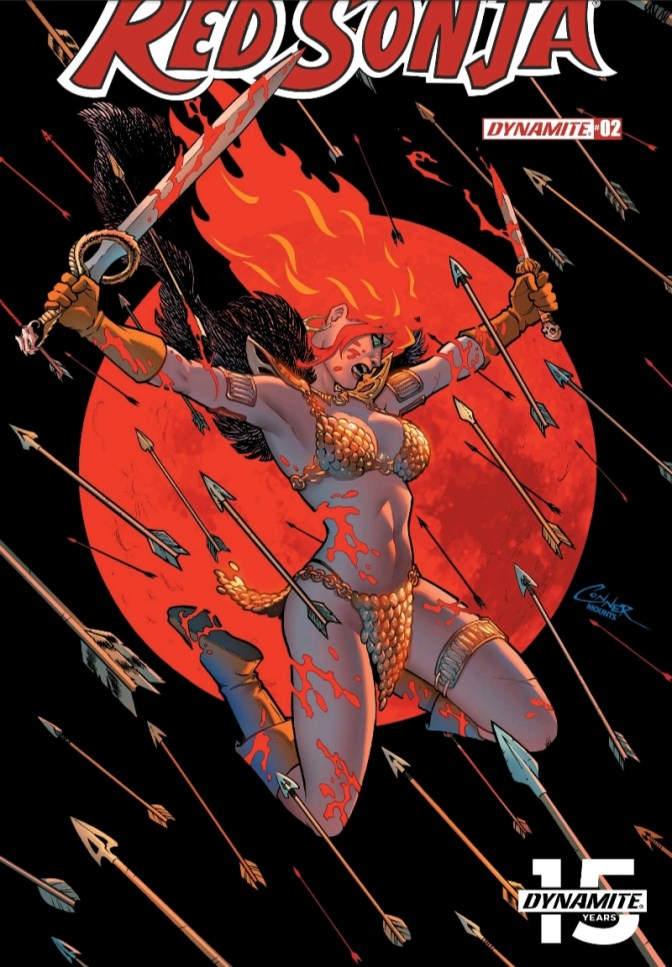 “No man knows the place of her birth, nor where she learned to wield a sword to shame many a male. They know only that she is called The She-Devil of The Hyrkanian Steppes. That, and RED SONJA. MARK RUSSELL (The Flintstones) and MIRKO COLAK (Conan) bring a savage tale of metal and blood. A world conqueror possesses a massive army and a fatal prophecy. A bastard sorceress craves revenge. And a fearsome red-haired warrior is made wartime ruler of a homeland set for decimation.”