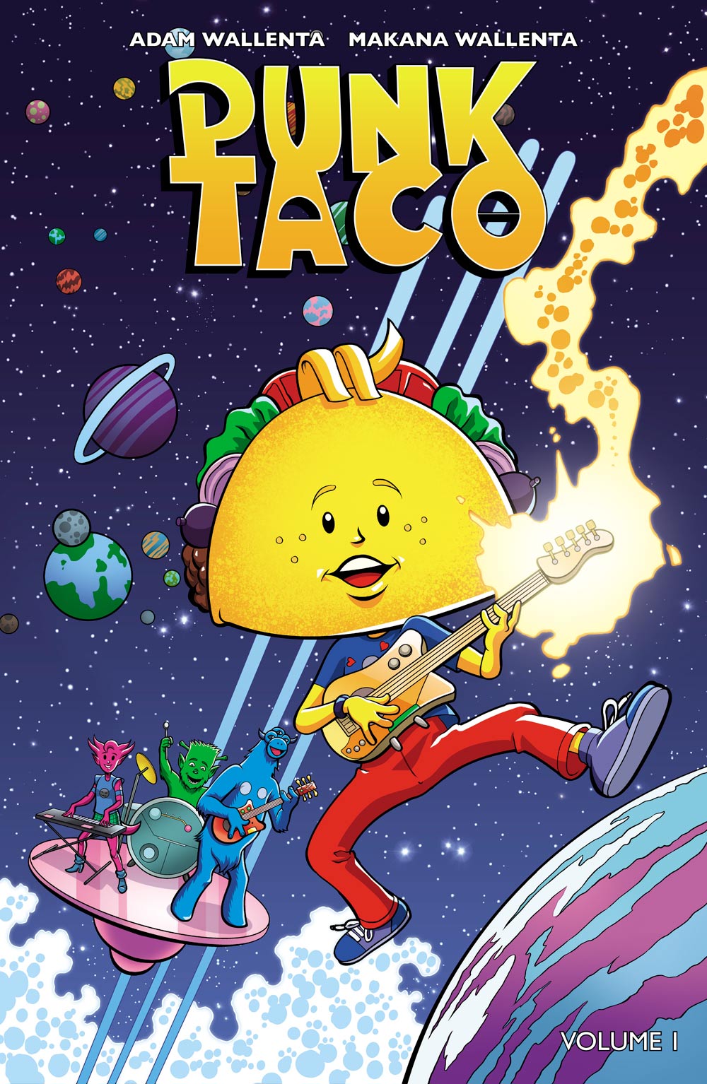 Punk Taco, is a book series created by the father and son creative team, consisting of Adam Wallenta (DC, Marvel, American Mule Entertainment/Public Enemy), and Makana Wallenta. The first volume introduces Punk Taco and explores his big mission involving his new friend, helping his friend find his family, and saving the galaxy from an Evil Tyrant. It is a Two-Time Ringo Award Winning story, for Best Kids Comic, and Best Graphic Novel in 2018.